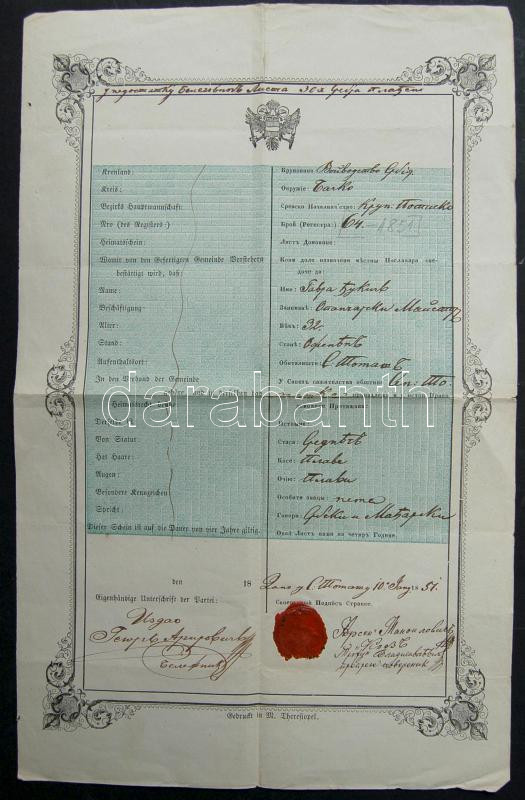 1851 Orosz útlevél / Russian passport https://www.darabanth.com/de/109-Fernauktion/109.0/Andere-Sammelgebiete/~337/1851-Orosz-utlevel-Russian-passport~II267147