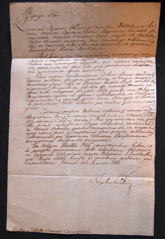 Beschreibung: 1800 Levél Bécsből Kremniczre József nádor eredeti aláírásával