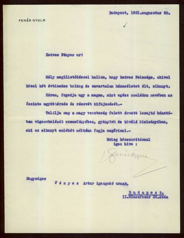 1931 Fehér Gyula a Nemzeti Színház tagjának aláírt levele https://www.darabanth.com/de/109-Fernauktion/109.0/Andere-Sammelgebiete/~338/1931-Feher-Gyula-a-Nemzeti-Szinhaz-tagjanak-alairt-levele~II269995