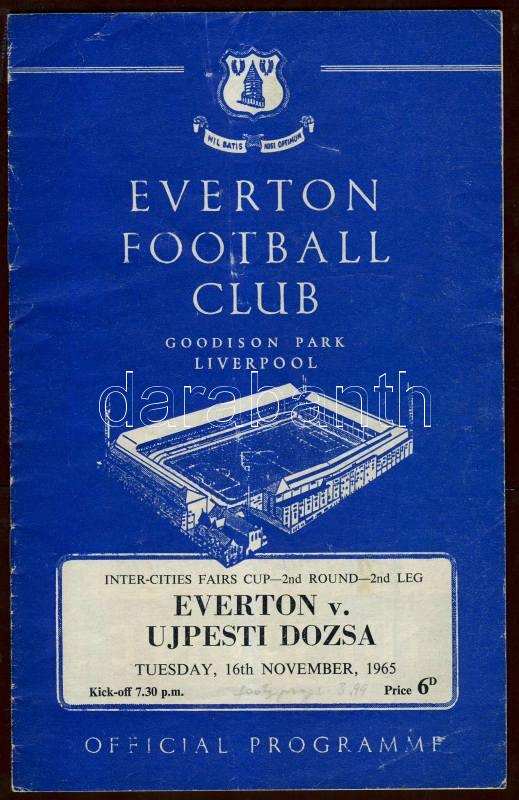 1965 Ujpesti Dózsa- Everton meccs programfüzet / Football-match offici... https://www.darabanth.com/de/109-Fernauktion/109.0/Andere-Sammelgebiete/~346/1965-Ujpesti-Dozsa-Everton-meccs-programfuzet-Football-match-officiel-programme~II272889