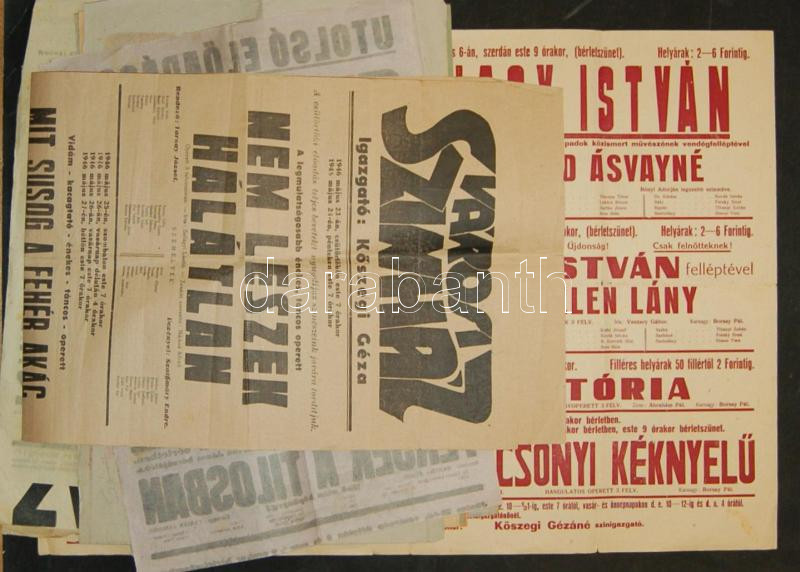 9 db színházi plakát az 1950-es évekből https://www.darabanth.com/de/109-Fernauktion/109.0/Andere-Sammelgebiete/~346/9-db-szinhazi-plakat-az-1950-es-evekbol~II270080