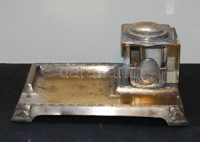 Antik alpakka asztali tintatartó kivehető üvegtömbbel és tintás csészé... https://www.darabanth.com/de/109-Fernauktion/109.0/Andere-Sammelgebiete/~348/Antik-alpakka-asztali-tintatarto-kiveheto-uvegtombbel-es-tintas-cseszevel-viseltes-allapot~II270110