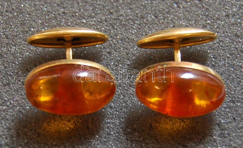Beschreibung: Párban lévő borostyánköves mandzsettagomb