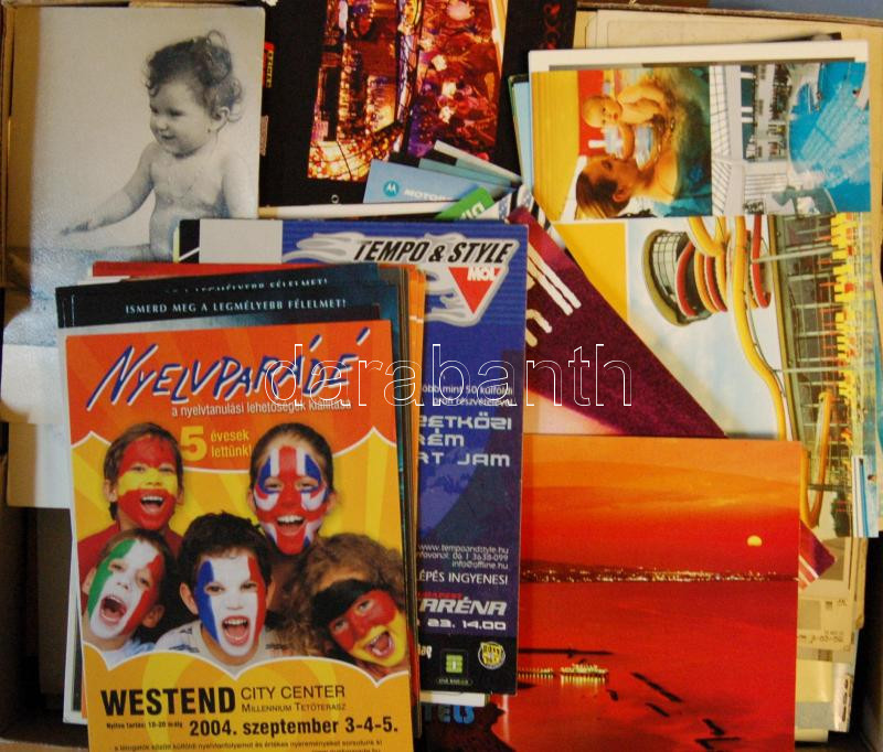 Beschreibung: Vegyes bolhapiac tétel, benne gyermekfotók, térképek, reklám