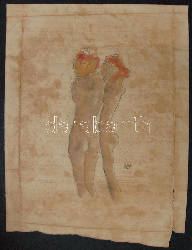 Beschreibung: Egon Schiele 1911 jelzésű rajz vegyes technika 30x40cm