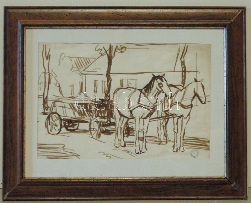 Vörös Géza (1897-1957) lovasszekeret ábrázoló, diófapác technikával ké... https://www.darabanth.com/de/109-Fernauktion/109.0/Andere-Sammelgebiete/~358/Voros-Geza-1897-1957-lovasszekeret-abrazolo-diofapac-technikaval-keszult-festmeny-sz~II271363
