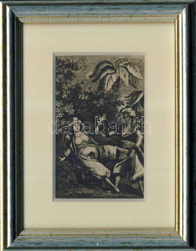 Beschreibung: cca 1870 Török háremi pornót ábrázoló acélmetszet, keretben (12,5x16,5cm), Lipcse