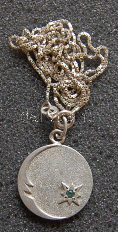 Beschreibung: Cca 1950-es évek dekoratív női ezüst medál markozittal, láncon, 5,39g