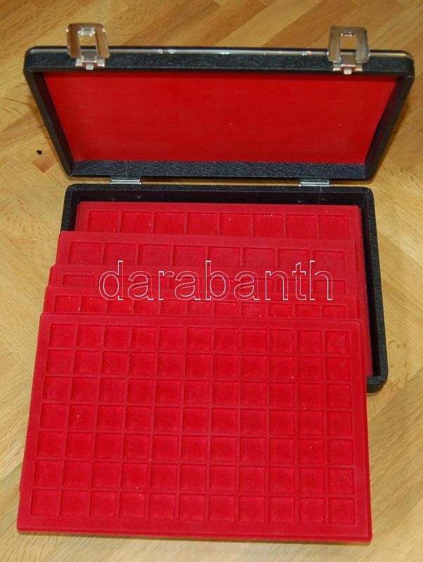 Beschreibung: Nagyalakú éremtartó koffer, 4x40, 2x77 férőhelyes tálcával, kulccsal, jó állapotban
