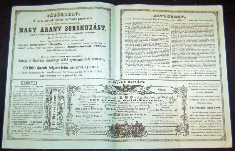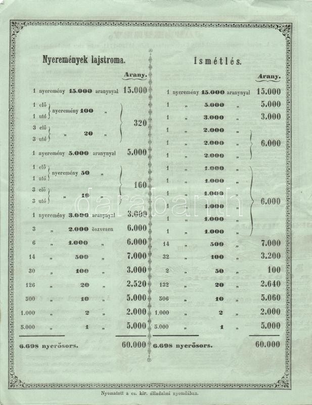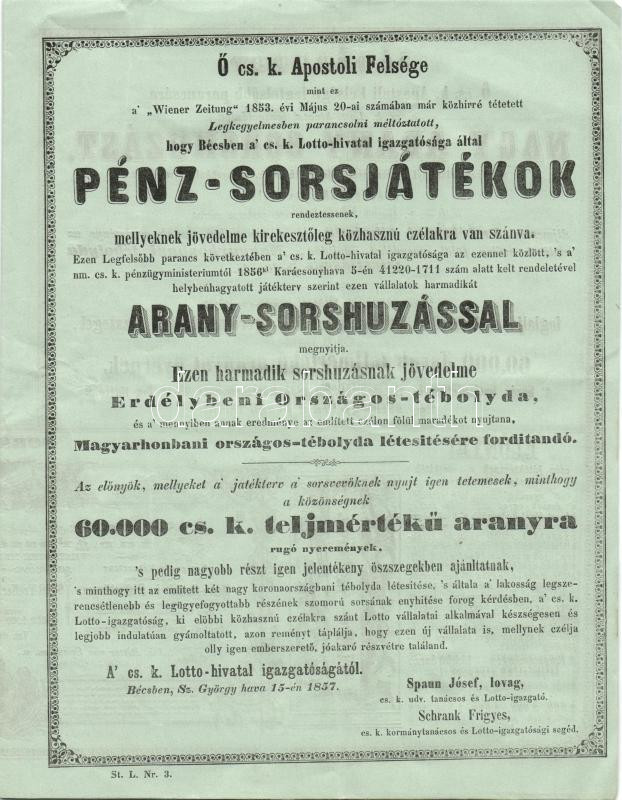 1853 Hirdetmény országos lottósorsjáték tartásáról erdélyi tébolyda építés javára 4 oldal benne a sorsjegy mintájával / Call for national lottery with the sample of the lottery ticket