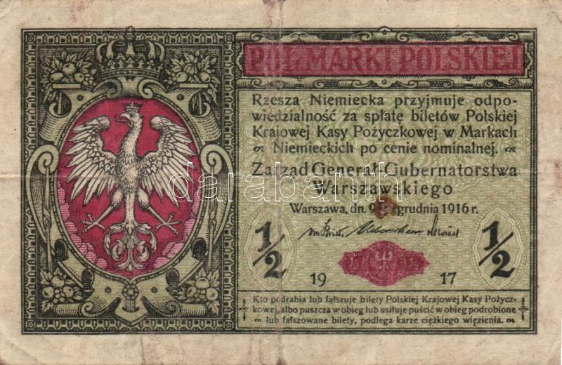 Lengyelország/Német megszállás I.V.H. 1916. 1/2 M T:III https://www.darabanth.com/de/109-Fernauktion/109.0/Numismatik/~364/LengyelorszagNemet-megszallas-IVH-1916-12-M-TIII~II271329