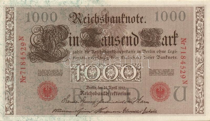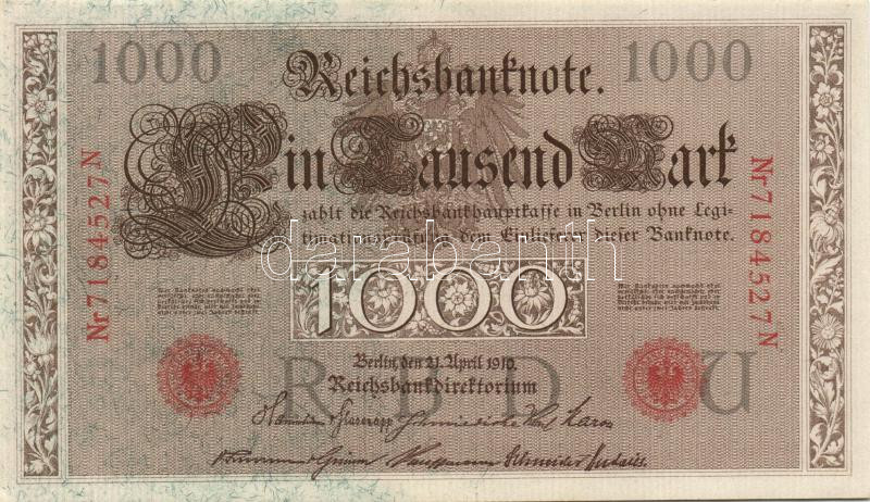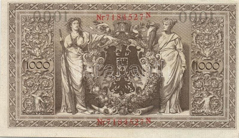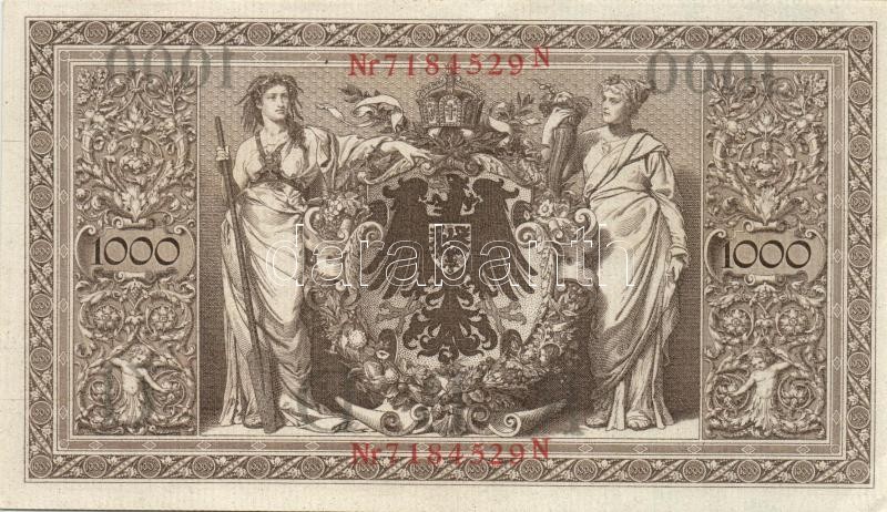 Beschreibung: Német Birodalom / Császárság 1910. 1000M (2x) kis ugrású sorszámokkal T:I,I-