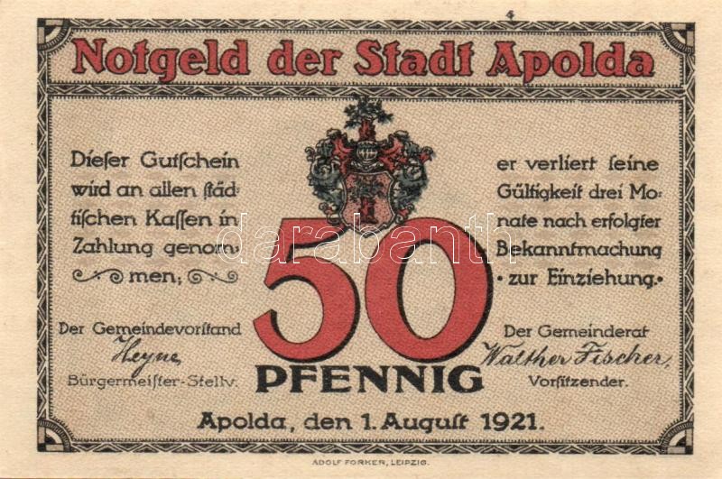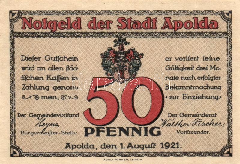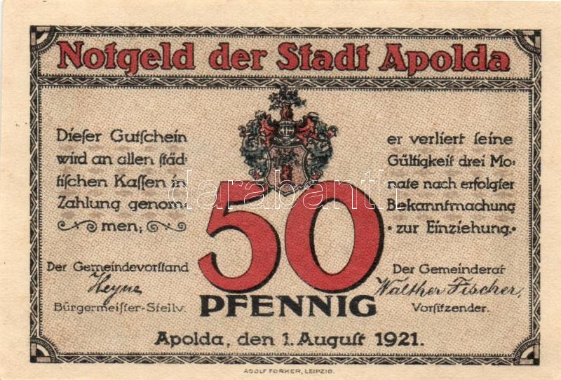 Német Birodalom / Weimari Köztársaság / Apolda 1921. 50Pf(6x) 6klf db,... https://www.darabanth.com/de/109-Fernauktion/109.0/Numismatik/~364/Nemet-Birodalom-Weimari-Koztarsasag-Apolda-1921-50Pf6x-6klf-db-teljes-sor-TI~II273630