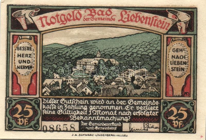 Német Birodalom / Weimari Köztársaság / Bad Liebenstein D.N. 10Pf + 25... https://www.darabanth.com/de/109-Fernauktion/109.0/Numismatik/~364/Nemet-Birodalom-Weimari-Koztarsasag-Bad-Liebenstein-DN-10Pf-plus-25Pf-plus-50Pf-3klf-db-teljes-~II273639