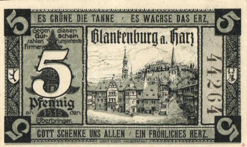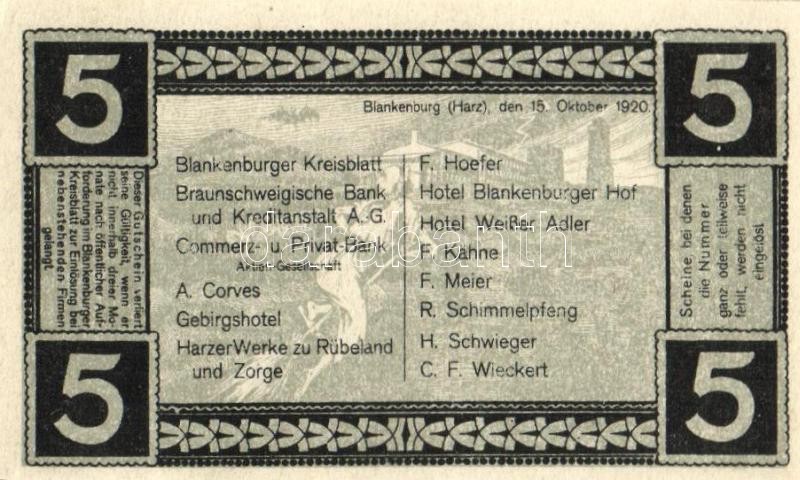 Beschreibung: Német Birodalom / Weimari Köztársaság / Blankenburg 1920. 5Pf + 10Pf(2x) + 25Pf + 50Pf 5klf db, teljes sor T:I