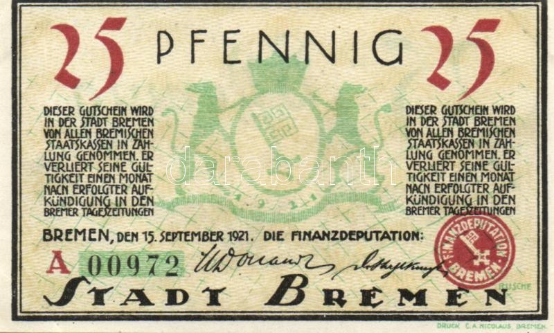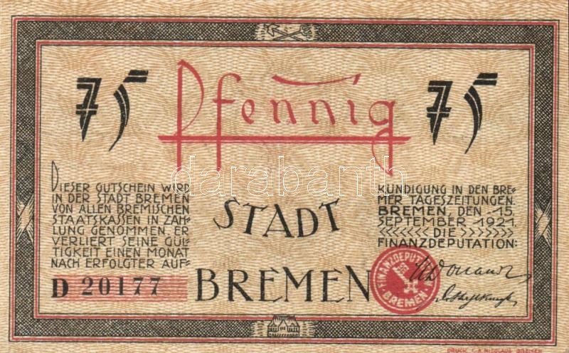 Német Birodalom / Weimari Köztársaság / Bremen 1921. 25Pf + 50Pf + 75P... https://www.darabanth.com/de/109-Fernauktion/109.0/Numismatik/~364/Nemet-Birodalom-Weimari-Koztarsasag-Bremen-1921-25Pf-plus-50Pf-plus-75Pf-3klf-db-teljes-sor-TI~II273646