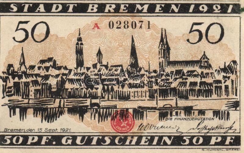 Beschreibung: Német Birodalom / Weimari Köztársaság / Bremen 1921. 25Pf + 50Pf + 75Pf 3klf db, teljes sor T:I