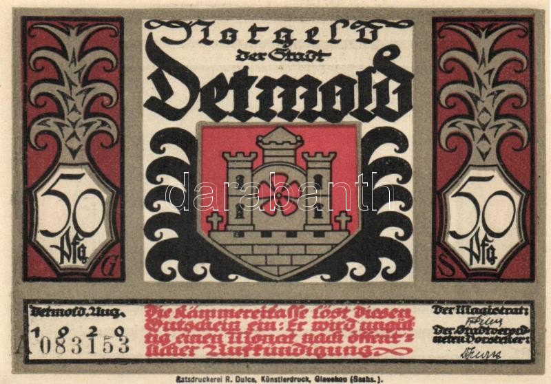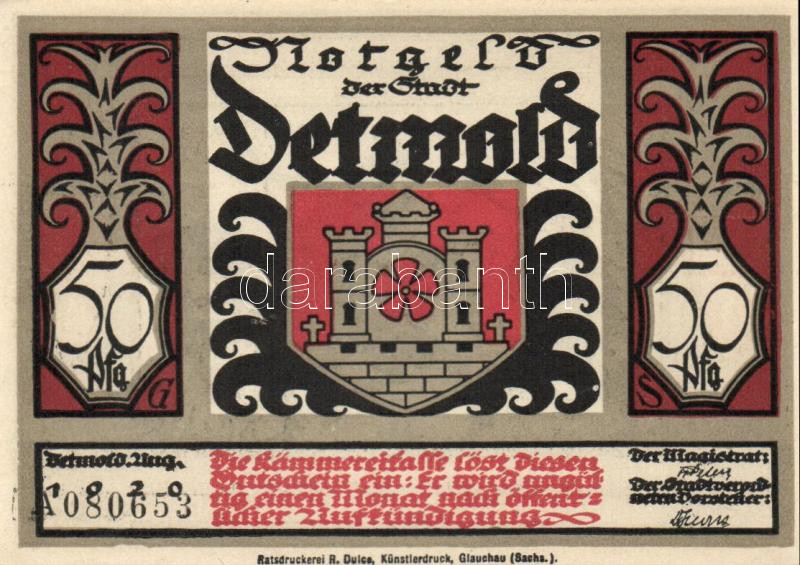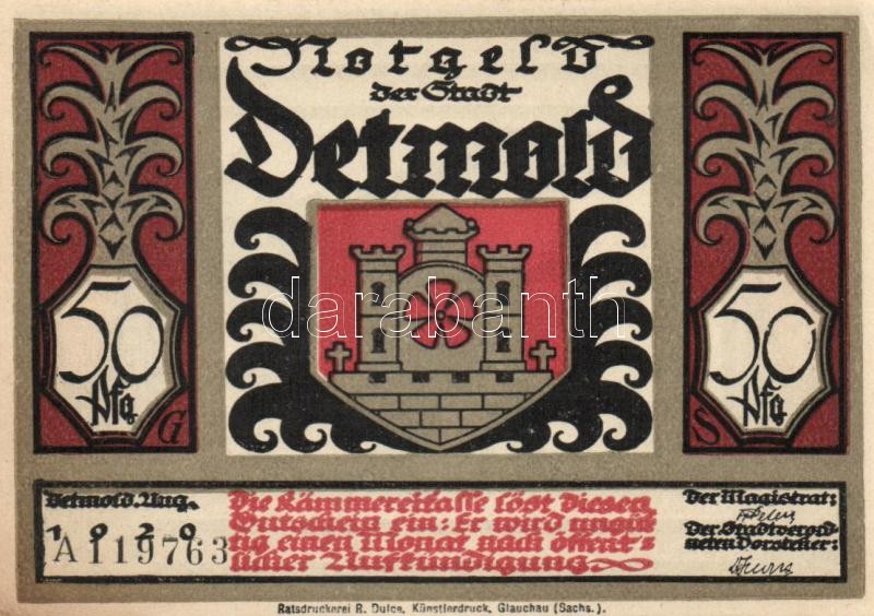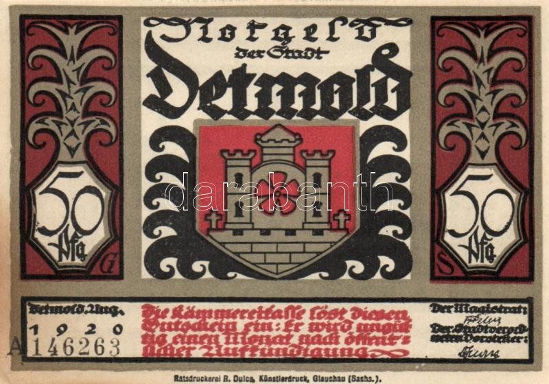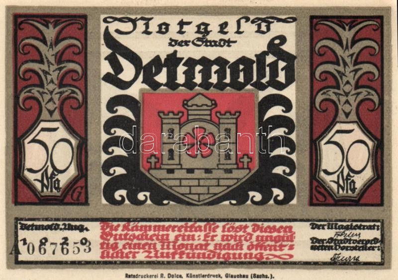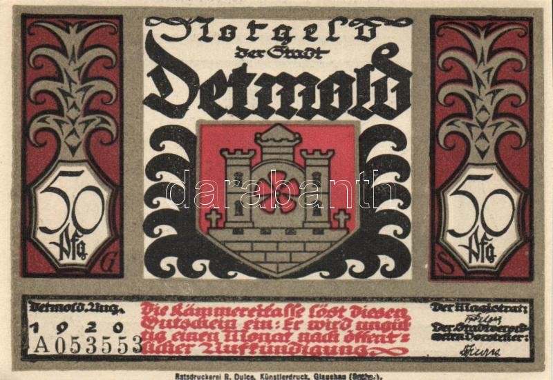 Német Birodalom / Weimari Köztársaság / Detmold 1920. 50Pf(10x) 10klf ... https://www.darabanth.com/de/109-Fernauktion/109.0/Numismatik/~364/Nemet-Birodalom-Weimari-Koztarsasag-Detmold-1920-50Pf10x-10klf-db-teljes-sor-TI~II273658