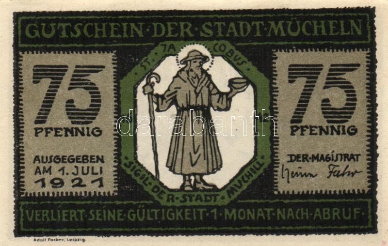 Beschreibung: Német Birodalom /Weimari Köztársaság/ Mücheln 1921. 25Pf + 50Pf(3x) + 75Pf összesen 5klf db, teljes sor T:I