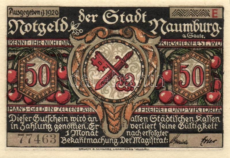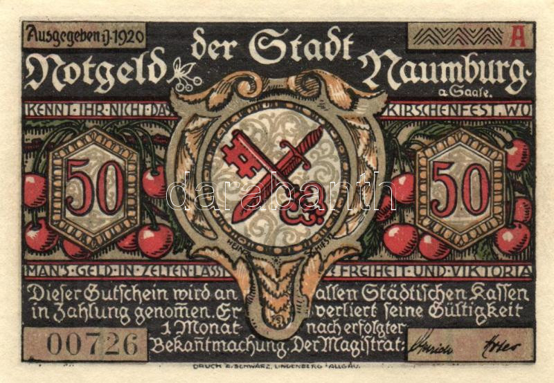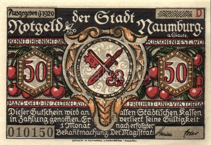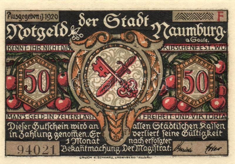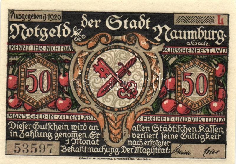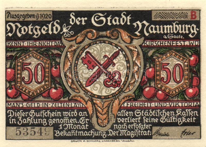 Beschreibung: Német Birodalom /Weimari Köztársaság/ Naumburg 1920. 50Pf(12x) 12klf db, teljes sor T:I
