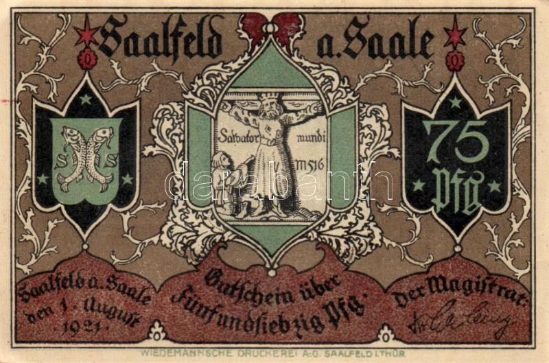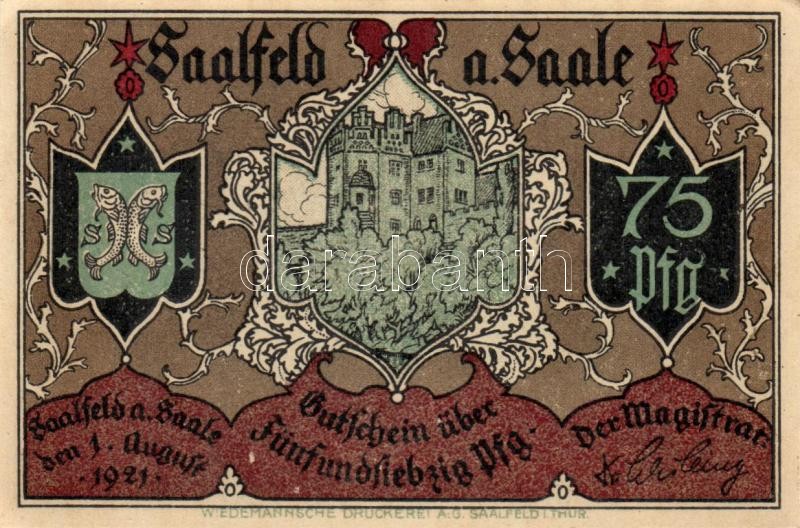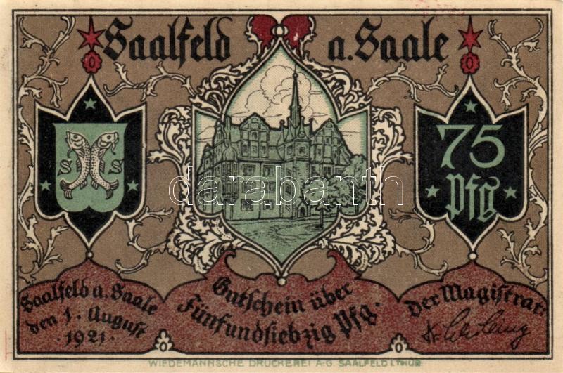 Német Birodalom /Weimari Köztársaság/ Saalfeld 1921. 75Pf(5x) 5klf db,... https://www.darabanth.com/de/109-Fernauktion/109.0/Numismatik/~364/Nemet-Birodalom-Weimari-Koztarsasag-Saalfeld-1921-75Pf5x-5klf-db-teljes-sor-TI~II273245