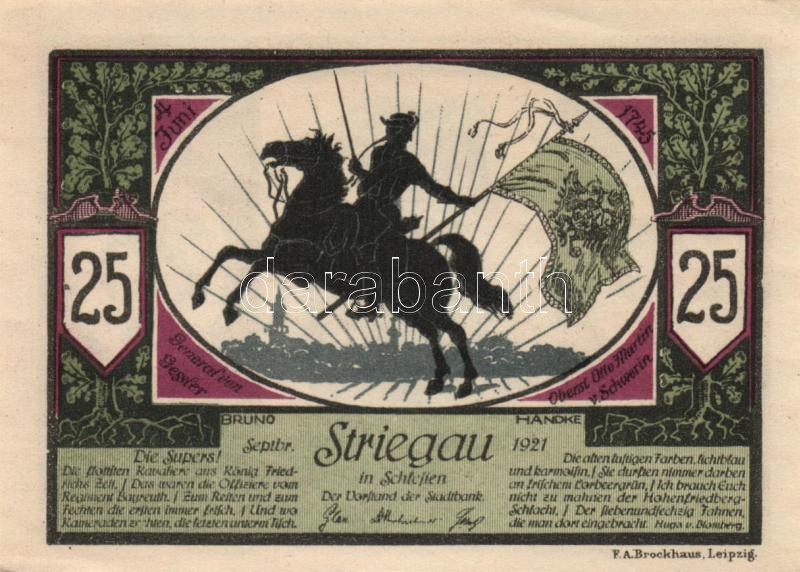 Beschreibung: Német Birodalom /Weimari Köztársaság/ Striegau 1921. 25Pf(2x) + 50Pf(2x) + 75Pf(2x) összesen 6klf db, teljes sor T:I