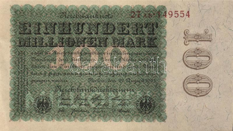 Német Birodalom/Weimari Köztársaság 1922. 100.000.000M T:I- https://www.darabanth.com/de/109-Fernauktion/109.0/Numismatik/~364/Nemet-BirodalomWeimari-Koztarsasag-1922-100000000M-TI-~II271041