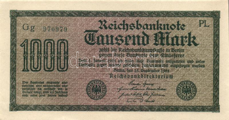 Német Birodalom/Weimari Köztársaság 1922. 1000M T:I- https://www.darabanth.com/de/109-Fernauktion/109.0/Numismatik/~364/Nemet-BirodalomWeimari-Koztarsasag-1922-1000M-TI-~II271127