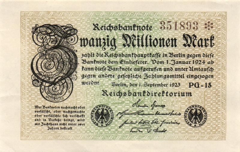 Német Birodalom/Weimari Köztársaság 1923. 20.000.000M T:I- https://www.darabanth.com/de/109-Fernauktion/109.0/Numismatik/~364/Nemet-BirodalomWeimari-Koztarsasag-1923-20000000M-TI-~II271183