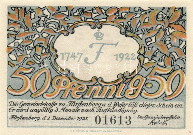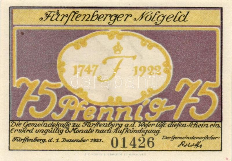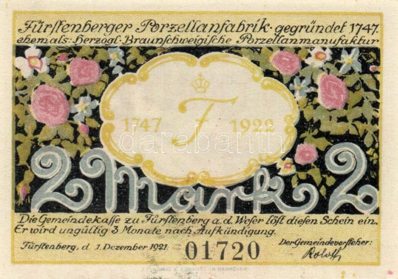 Német Birodalom/Weimari Köztársaság/Fürstenberg 1921. 50Pf + 75Pf + 1M... https://www.darabanth.com/de/109-Fernauktion/109.0/Numismatik/~364/Nemet-BirodalomWeimari-KoztarsasagFurstenberg-1921-50Pf-plus-75Pf-plus-1M-plus-2M-osszesen-4-klf-db-~II273921