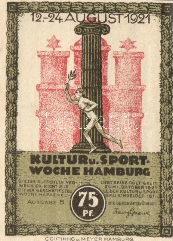 Német Birodalom/Weimari Köztársaság/Hamburg 1921. 50Pf + 75Pf + 1M 3 k... https://www.darabanth.com/de/109-Fernauktion/109.0/Numismatik/~364/Nemet-BirodalomWeimari-KoztarsasagHamburg-1921-50Pf-plus-75Pf-plus-1M-3-klf-db-teljes-sor-TI~II273926
