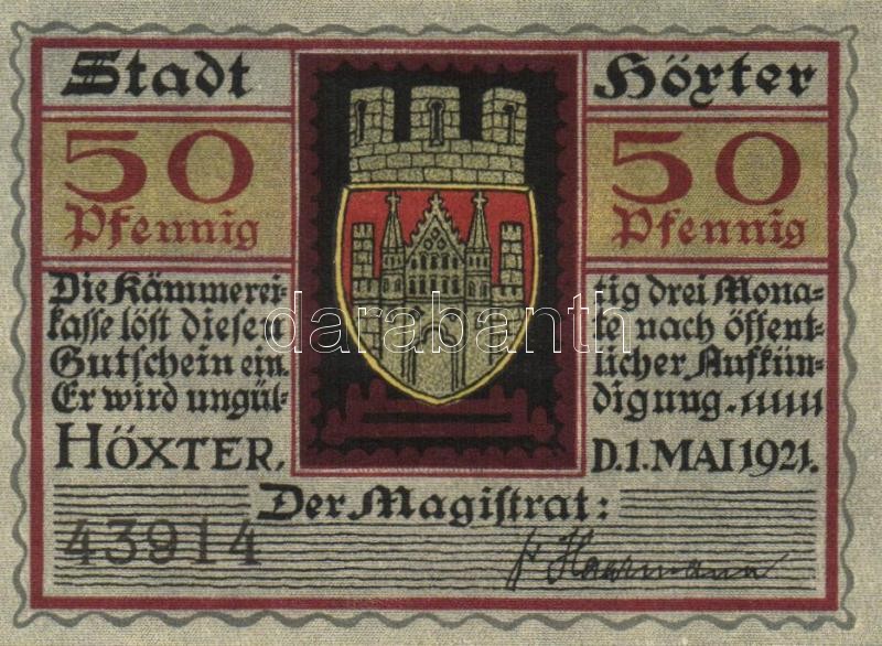 Német Birodalom/Weimari Köztársaság/Höxter 1921. 10Pf + 25 Pf + 50Pf, ... https://www.darabanth.com/de/109-Fernauktion/109.0/Numismatik/~364/Nemet-BirodalomWeimari-KoztarsasagHoxter-1921-10Pf-plus-25-Pf-plus-50Pf-3-klf-db-teljes-sor-TI~II273931