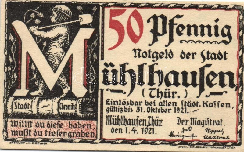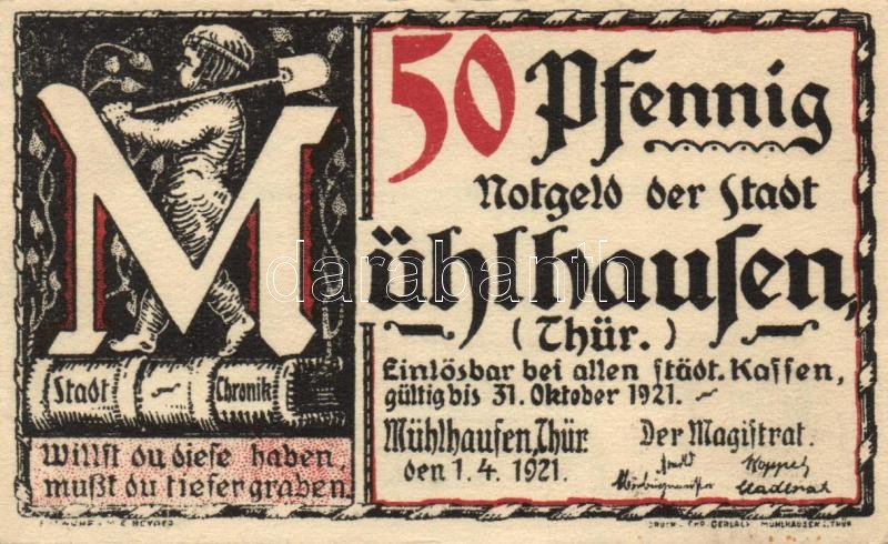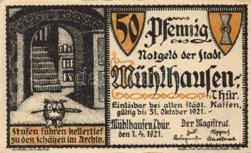Német Birodalom/Weimari Köztársaság/Mühlhausen 1921. 50Pf (5x), 5 klf ... https://www.darabanth.com/de/109-Fernauktion/109.0/Numismatik/~364/Nemet-BirodalomWeimari-KoztarsasagMuhlhausen-1921-50Pf-5x-5-klf-db-teljes-sor-TI~II273954