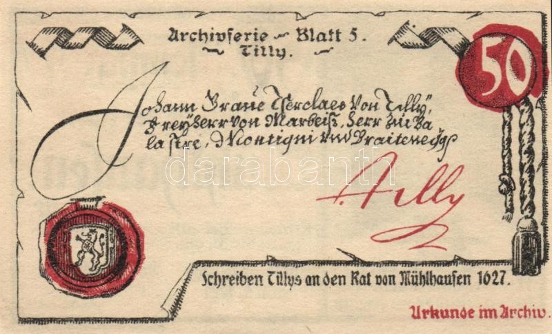Beschreibung: Német Birodalom/Weimari Köztársaság/Mühlhausen 1921. 50Pf (5x), 5 klf db, teljes sor T:I