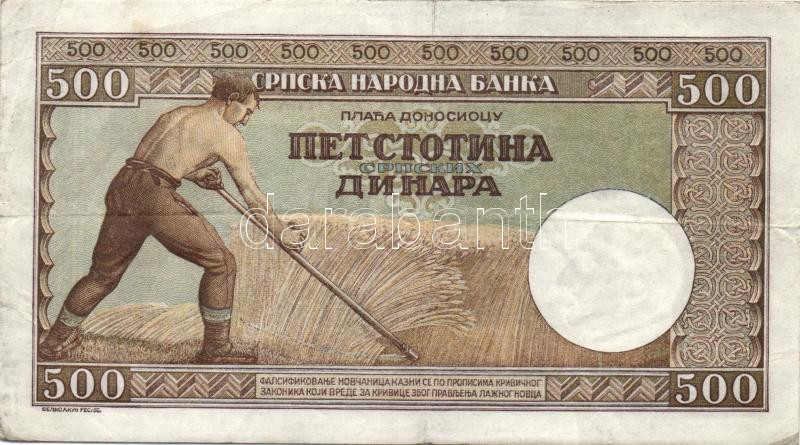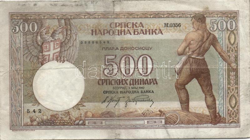 Szerbia/ II."V.H." német megszállás 1942. 500D T:II/III https://www.darabanth.com/de/109-Fernauktion/109.0/Numismatik/~364/Szerbia-IIVH-nemet-megszallas-1942-500D-TIIIII~II272350