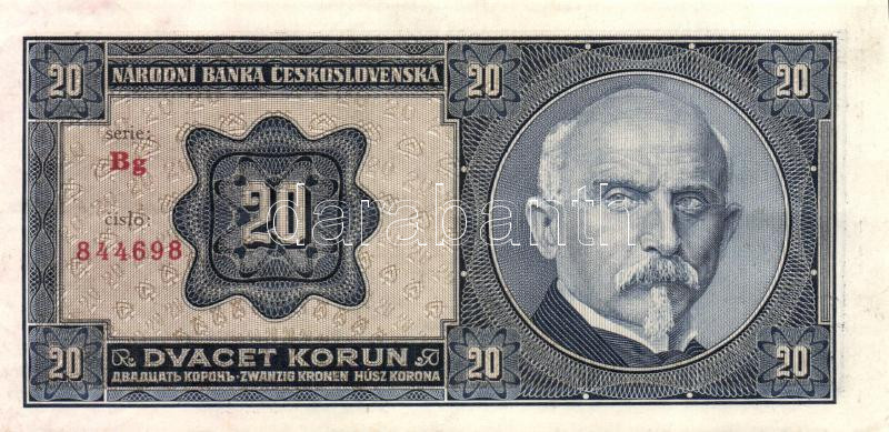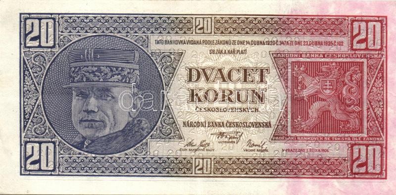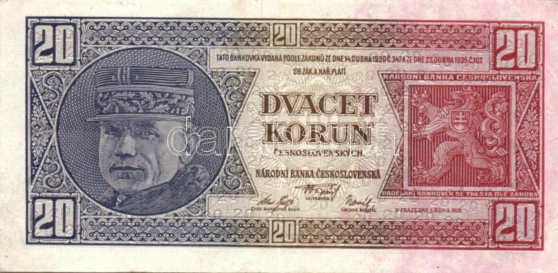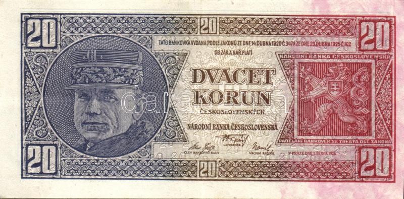 Csehszlovákia 1926. 20K(3x)egymásutáni sorszámokkal T:II https://www.darabanth.com/de/109-Fernauktion/109.0/Numismatik/~365/Csehszlovakia-1926-20K3xegymasutani-sorszamokkal-TII~II272345