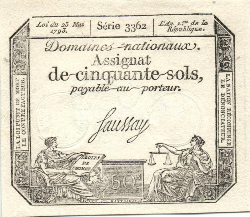 Franciaország 1793. 50S T:II-, alig látható hajlás! https://www.darabanth.com/de/109-Fernauktion/109.0/Numismatik/~365/Franciaorszag-1793-50S-TII--alig-lathato-hajlas~II271341