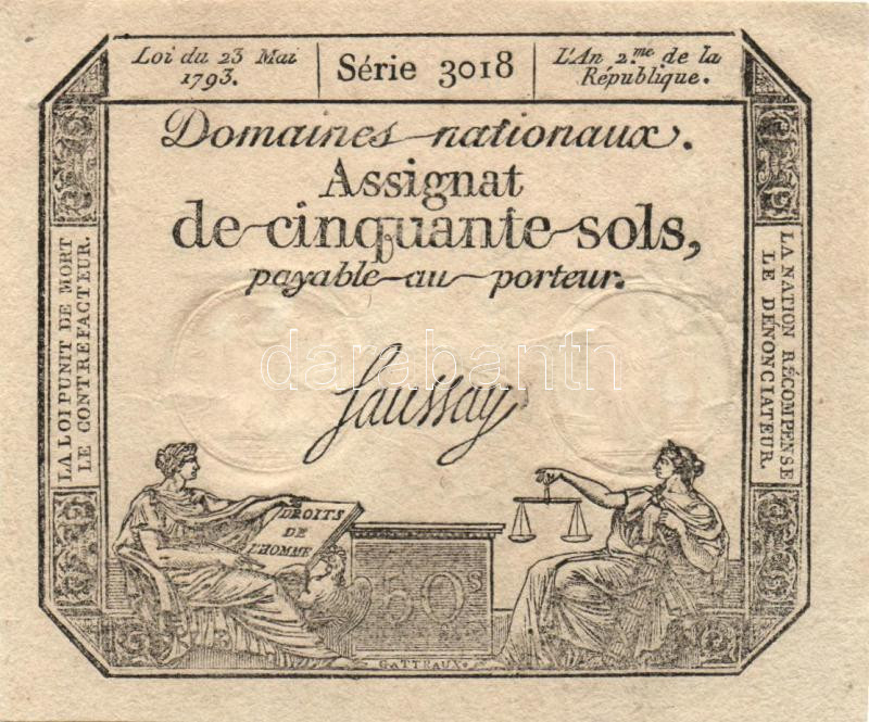 Franciaország 1793. 50S T:I https://www.darabanth.com/de/109-Fernauktion/109.0/Numismatik/~365/Franciaorszag-1793-50S-TI~II271340