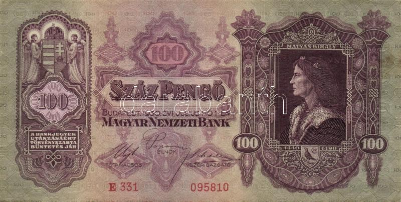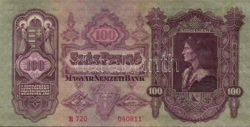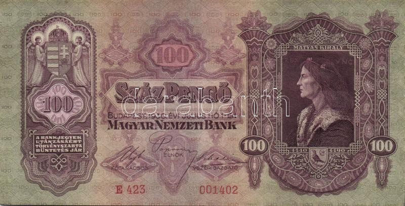 Beschreibung: 1930. 100P (22x) T:II+ többségében alig látható hajlással!