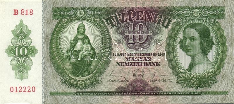 Beschreibung: 1936. 10P (10x) egymás utáni sorszámokkal, egyik darabon papírránccal T:II+
