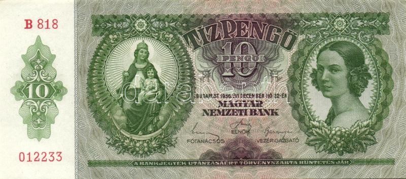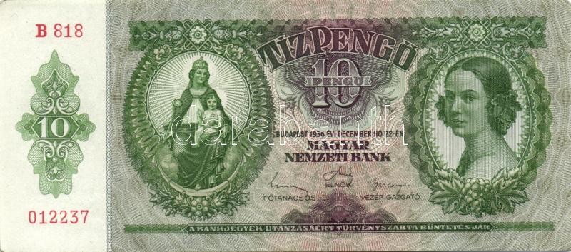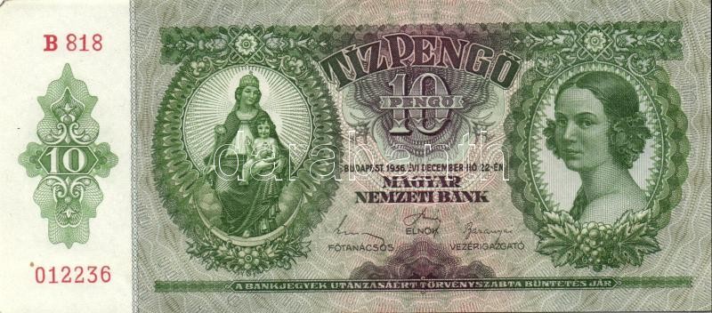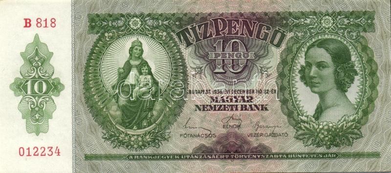 Beschreibung: 1936. 10P (10x) egymás utáni sorszámokkal, egyik darabon papírránccal T:II+