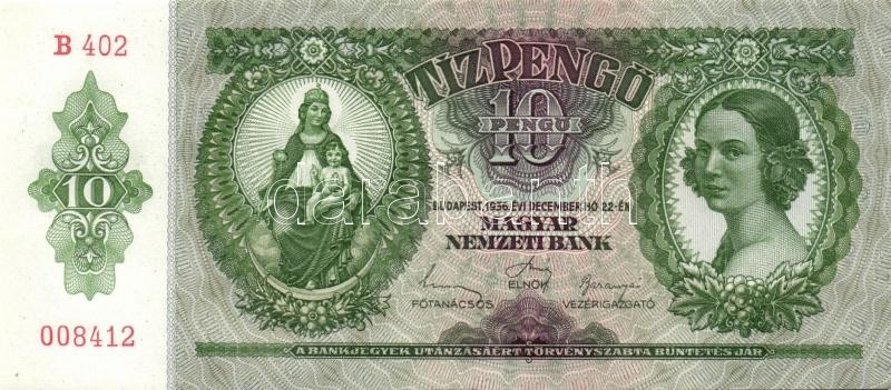1936. 10P (5x) egymás utáni sorszámokkal T:I https://www.darabanth.com/de/109-Fernauktion/109.0/Numismatik/~366/1936-10P-5x-egymas-utani-sorszamokkal-TI~II273991