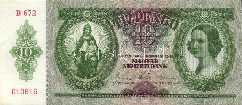 1936. 10P (9x) egymás utáni sorszámokkal T:II+ https://www.darabanth.com/de/109-Fernauktion/109.0/Numismatik/~366/1936-10P-9x-egymas-utani-sorszamokkal-TIIplus~II273901