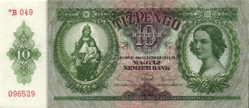 Beschreibung: 1936. 10P *-gal (10x) egymás utáni sorszámokkal, két darabon papírráncokkal T:I