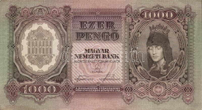 1943. 1000P(2x)egymásutáni sorszámokkal T:II- https://www.darabanth.com/de/109-Fernauktion/109.0/Numismatik/~366/1943-1000P2xegymasutani-sorszamokkal-TII-~II272339