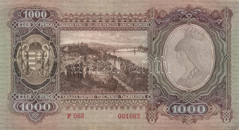 1943. 1000P(2x)kis ugrású sorszámokkal T:II+ https://www.darabanth.com/de/109-Fernauktion/109.0/Numismatik/~366/1943-1000P2xkis-ugrasu-sorszamokkal-TIIplus~II272340