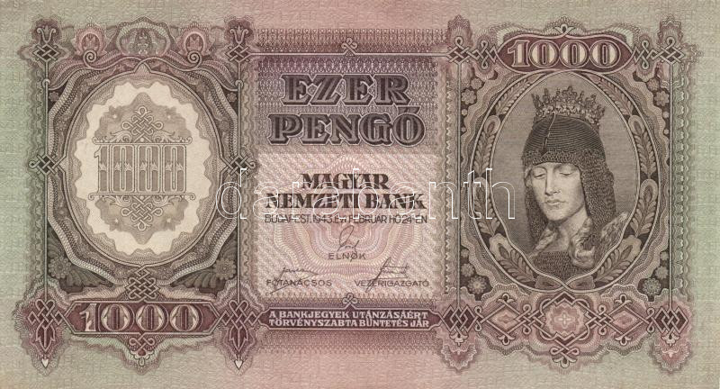 Beschreibung: 1943. 1000P(3x)egymásutáni, illetve kis ugrású sorszámokkal T:II+