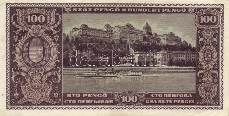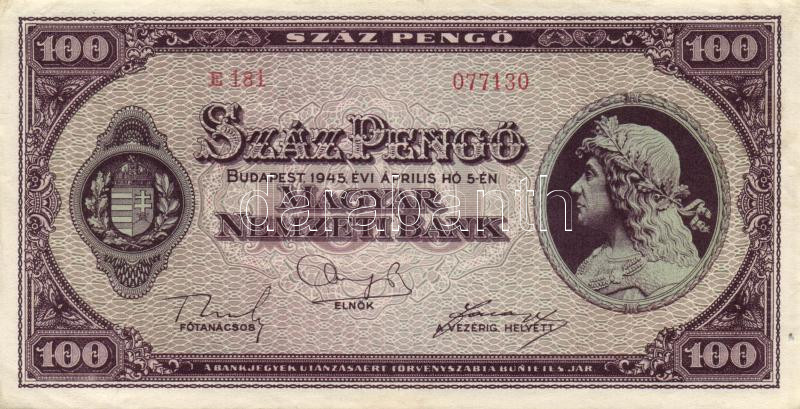 1945. 100P érdekes tévnyomat: az alsó "A bankjegyek... kezdetű feliraton teljes ékezethiány, valamint hiányos betűk pl "T" helyett "I" valamint félbetűk találhatók! T:II-(pici lyuk a bal alsó ívszélen)