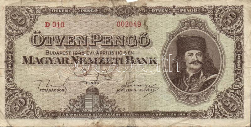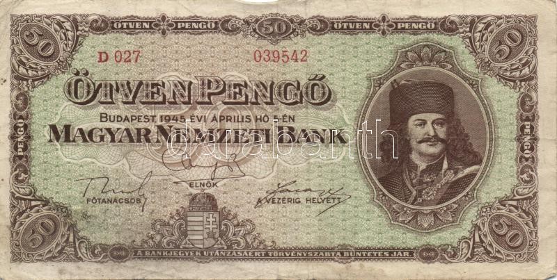 1945. 50P (10x) T:III,III/IV https://www.darabanth.com/de/109-Fernauktion/109.0/Numismatik/~366/1945-50P-10x-TIII-IIIIV~II270833