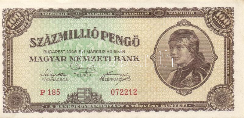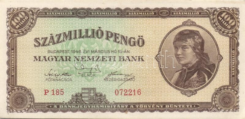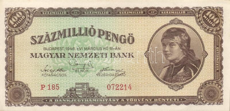 1946. 100.000.000P (3x) kis ugrású sorszámokkal T:I,I- https://www.darabanth.com/de/109-Fernauktion/109.0/Numismatik/~366/1946-100000000P-3x-kis-ugrasu-sorszamokkal-TI-I-~II273874